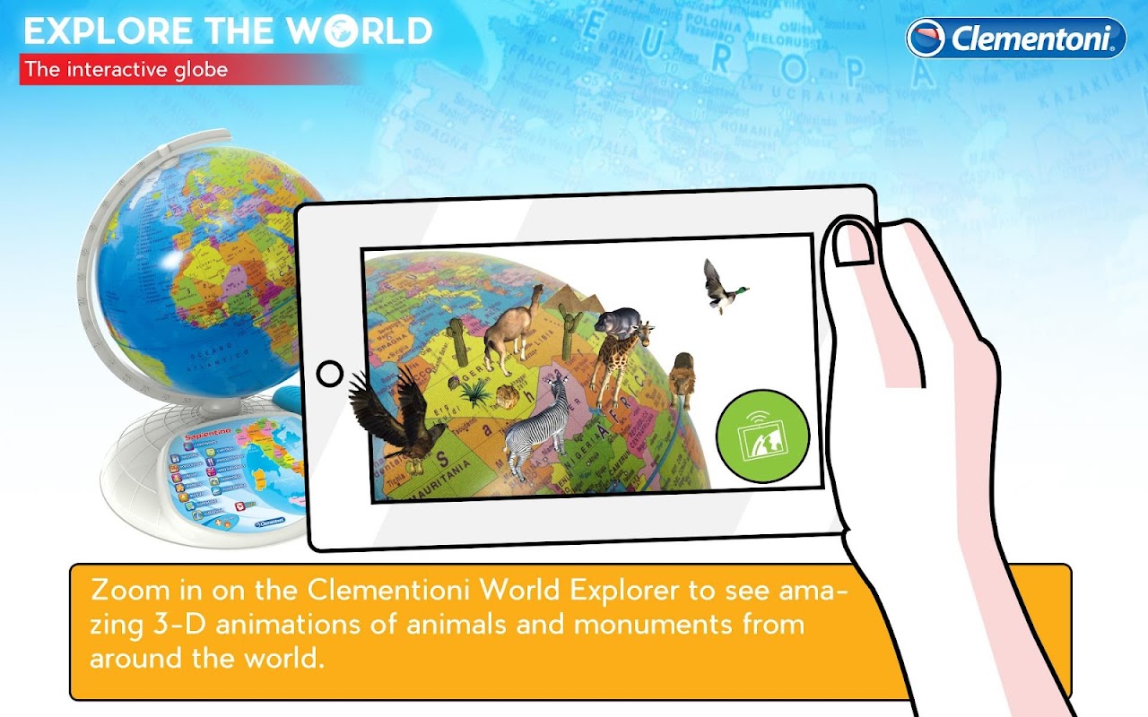 Zoom in on the Clementioni Explore the World to see amazing 3-D animations of animals and monuments from around the world.