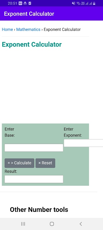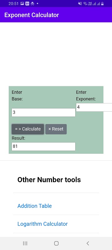• برنامه‌نما Exponent Calculator عکس از صفحه