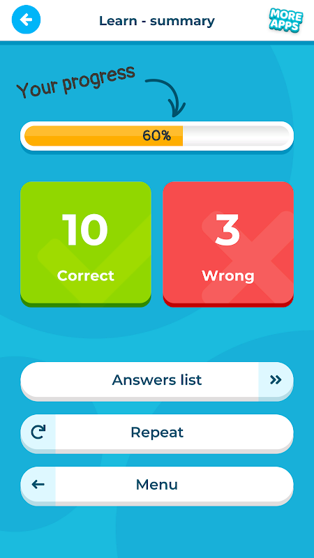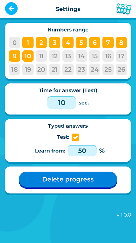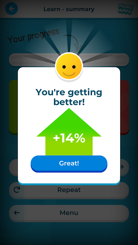 process فرایند یادگیری با استفاده از ستارگان پیشرفت تجسم می شود. این به شما امکان می دهد پیشرفت یادگیری فعالیتهای فردی و همچنین پیشرفت کلی را بررسی کنید. این الگوریتم به طور جداگانه پیشرفت برای هر نوع عملیات ریاضی را محاسبه می کند. علاوه بر این ، آن را به انتخاب شده در حال حاضر مورد استفاده در عملیات ریاضی سازگار است.