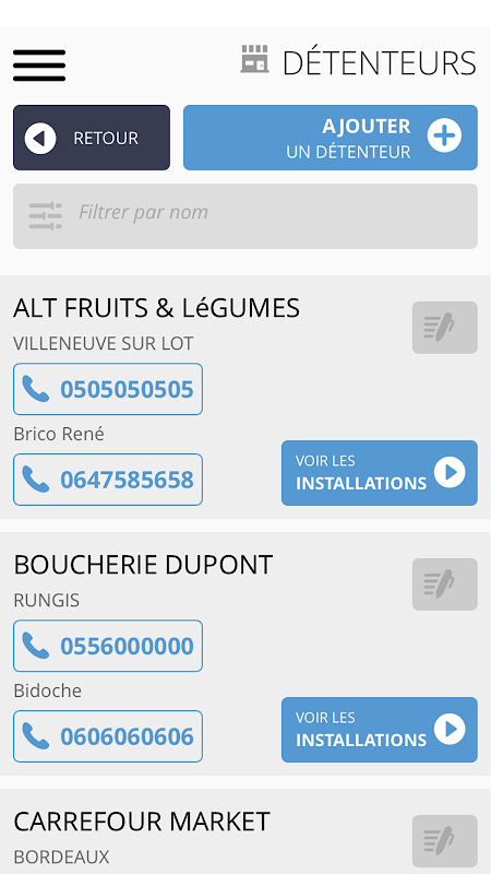 از رابط مدیریت خود، میتوانید پایگاههای داده (کاربر، مالک و لیست امکانات) خود را مدیریت کنید، سیلندرهای خود را مدیریت و مکانیابی کنید، FI-BSDD و سایر گزارشهای مداخله، دسترسی به آمار و موارد دیگر را ویرایش کنید.