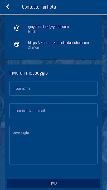 - بخش تماس متمرکز: به راحتی اطلاعات تماس Fabrizio Simonte را در یک بخش اختصاصی پیدا کنید. برای ارتباط مستقیم و فوری به هنرمند پیام دهید.