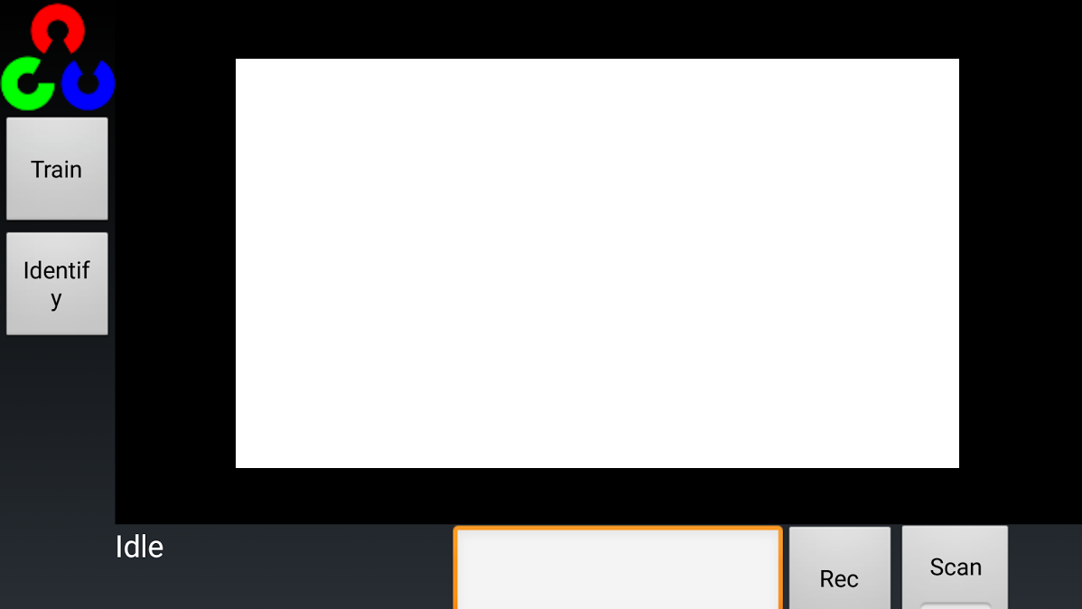 ج) پس از آموزش انجام شده است، تبدیل دوربین خود را بر روی صورت شما می خواهید برای شناسایی و کلیک کنید "اسکن"، یک بار تصویر را در سمت چپ بالای صفحه ظاهر می شود، ضربه "شناسایی" (بالا سمت چپ). در پایین سمت چپ به نام فرد همسان ظاهر خواهد شد APPera است خواهد شد.