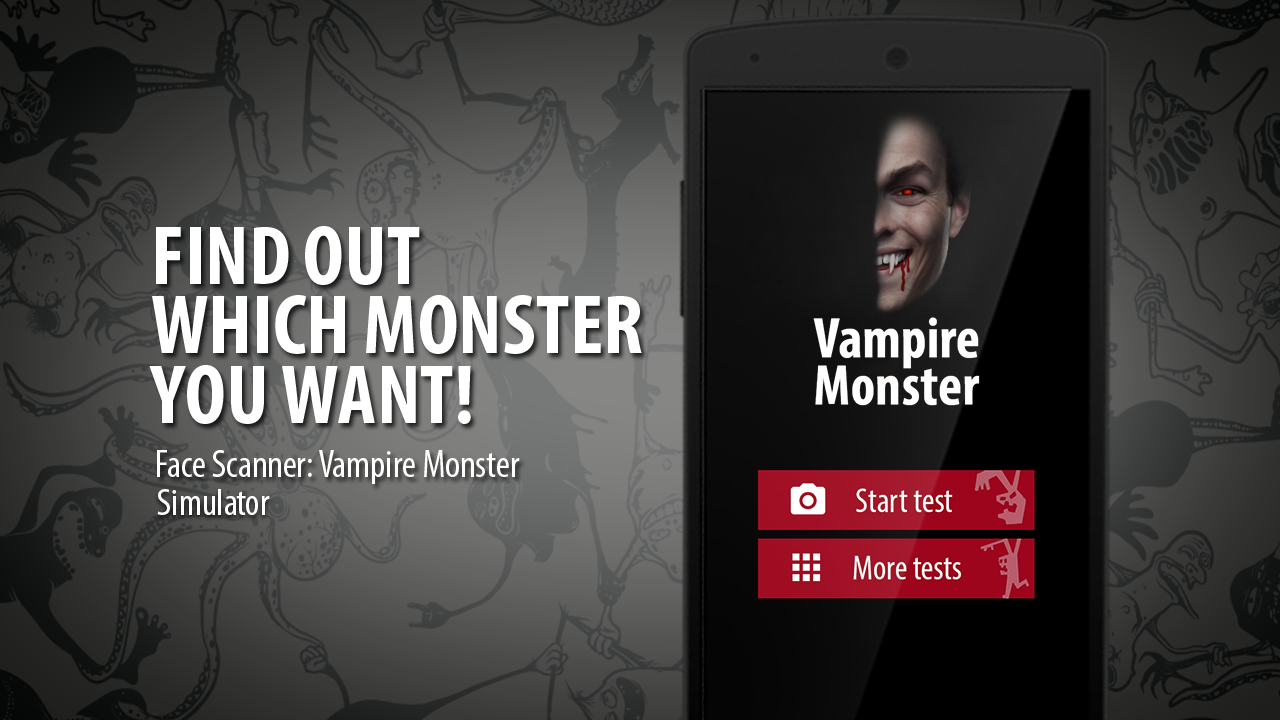 ATTENTION !!! Scanner Face Vampire Monster - this is only a simulation, the results of which are determined randomly. Scanner created just for fun, as a joke application. The application can scare, so do not install it if you have mental problems or heart!