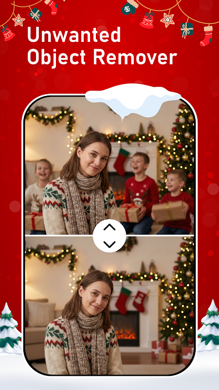 Transform into Santa, elves, snow queens, or Christmas characters in one tap! 🎅