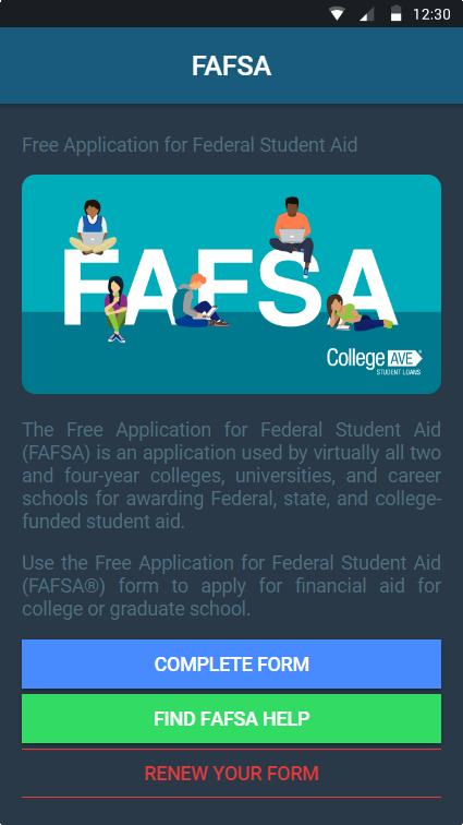 FAFSA App 2023 فرم غیر رسمی برای درخواست کمک مالی برای دانشکده کالج.