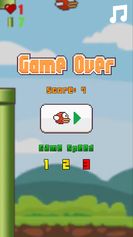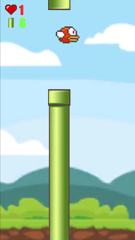 Вы - птичка. Ваша цель - пройти максимальное количество труб. Попыток - сколько соберете сердец.