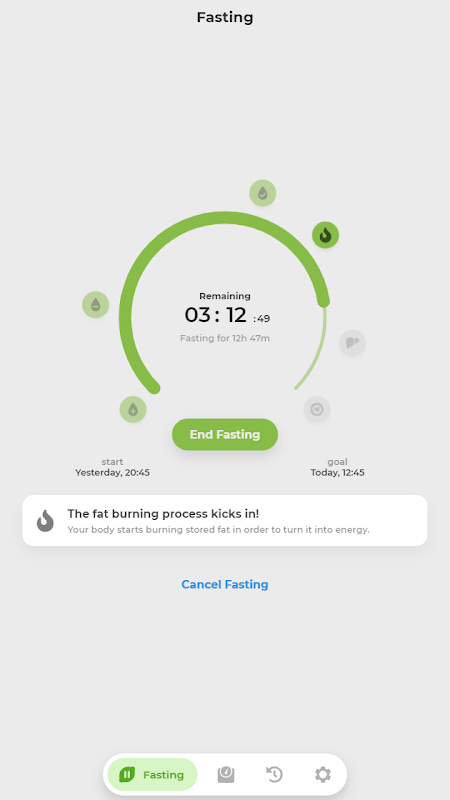 The app will let you know when to start and end fasting and will provide an explanation for the different phases of fasting.