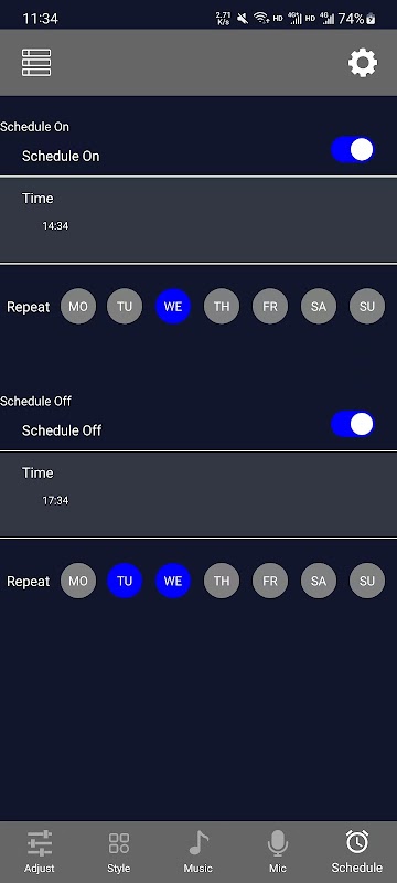 این برنامه ای است که نورها را از طریق بلوتوث کنترل می کند.