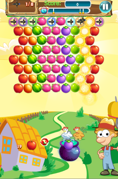 * Clear all the Fruit on the screen to level up,and try to get 3 stars on each level.