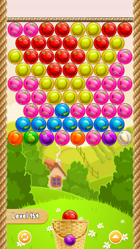Shoot so that fruits and vegetables fall into clusters of 3 or more fruits or vegetables. For example, strawberries for strawberries, blueberries for blueberries, apples for apples and so on. The resulting groups of identical elements will burst and disappear. Try to burst all the fruits with vegetables to go to the next level.