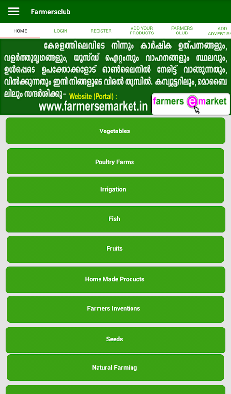 یک وب سایت و یک برنامه تلفن همراه کاملا به کشاورزان اختصاص داده شده برای نمایش و فروش محصولات خود را! این یک رویا، بلکه یک واقعیت است. باشگاه کشاورزان از Thodupuzha در حال توسعه یک برنامه تلفن همراه برای کشاورزان موفق شد. مقدار آن بیشتر از آن می توان تصور است و خدمات آنها به عموم مردم ارائه فوق العاده و تحسین است. یک کشاورز یا عمومی می توانید آن را برای خرید یا فروش محصولات خود کشاورزی، حیوانات، مرغ، ماهی ها، خاطرات و سایر محصولات مزرعه، مهد کودک و اقلام باغبانی و غیره و غیره استفاده .... این یک پلت فرم برای کسانی که می خواهند برای خرید و فروش ماشین آلات کشاورزی، کشاورزان اختراع، دانه وسایل نقلیه استفاده می شود، است، گل ها، پرندگان، و صفحه اصلی محصولات ساخته شده است. در واقع می توان بازار برای 'kanthari، کمی به کسب و کار املاک و مستغلات از طریق این سرمایه گذاری را پیدا خدمات پرداخت الکترونیکی و آنلاین آن را به پول نقد یا کاغذ بازار کمتر است. اگر یک کشاورز می خواهد به خرید و یا اشتراک برخی از کتاب های کشاورزی و یا نشریات یک بخش ویژه به طور کامل به این منظور اختصاص داده شده است. تبلیغ آن را به عنوان یک پلت فرم بالقوه هیبت الهام بخش برای ترویج کالاها و خدمات خود را به عنوان سایت و برنامه در حال حاضر به رعشه بازار کرالا در یک سبک کمک مالی. برای مشاوره و خدمات در یارانه ها، سایبان مزرعه، واحد کمپوست، بیو گاز گیاهان، کارگر ماهر کشاورزی، یکی unwaveringly می توانید در این برنامه بستگی دارد و در کوتاه باعث گسترش افق فراتر از رویاهای خود می تواند برسد. جهان قبل از آن شما باز می شود واقعا جذاب است و می توان پر زرق و برق خرید جدید با کمک این حمایت های دیجیتال را تجربه ..