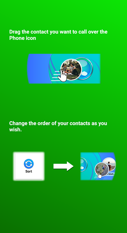 به سادگی مخاطبین مورد علاقه خود را به تماس سریع اضافه کنید و با یک کشیدن و رها کردن یا دو بار ضربه زدن به راحتی به آنها دسترسی داشته باشید. با قابلیت تنظیم آواتارهای سفارشی برای هر مخاطب، میتوانید به راحتی با یک نگاه تشخیص دهید که با چه کسی تماس میگیرید. به علاوه، برای دسترسی آسان، می توانید مخاطبین خود را به هر ترتیبی که ترجیح می دهید مرتب کنید.