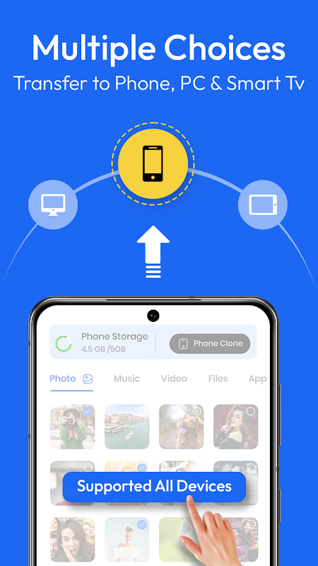 وقتی از Easy Share File Sharing استفاده می کنید، می توانید به سرعت فایل هایی با هر اندازه و با هر فرمتی را در دستگاه دیگری به اشتراک بگذارید، مهم نیست که آفلاین هستید یا آنلاین. میتوانید تلفن هوشمند را از Android به Android، اشتراکگذاری فایل به تلویزیون هوشمند و دستگاههای رایانهای تغییر دهید و کلون کنید. انتقال فایل ها در حال حاضر بسیار سریع و فوق العاده آسان با Smart Switch Mobile - برنامه Clone Phone است!