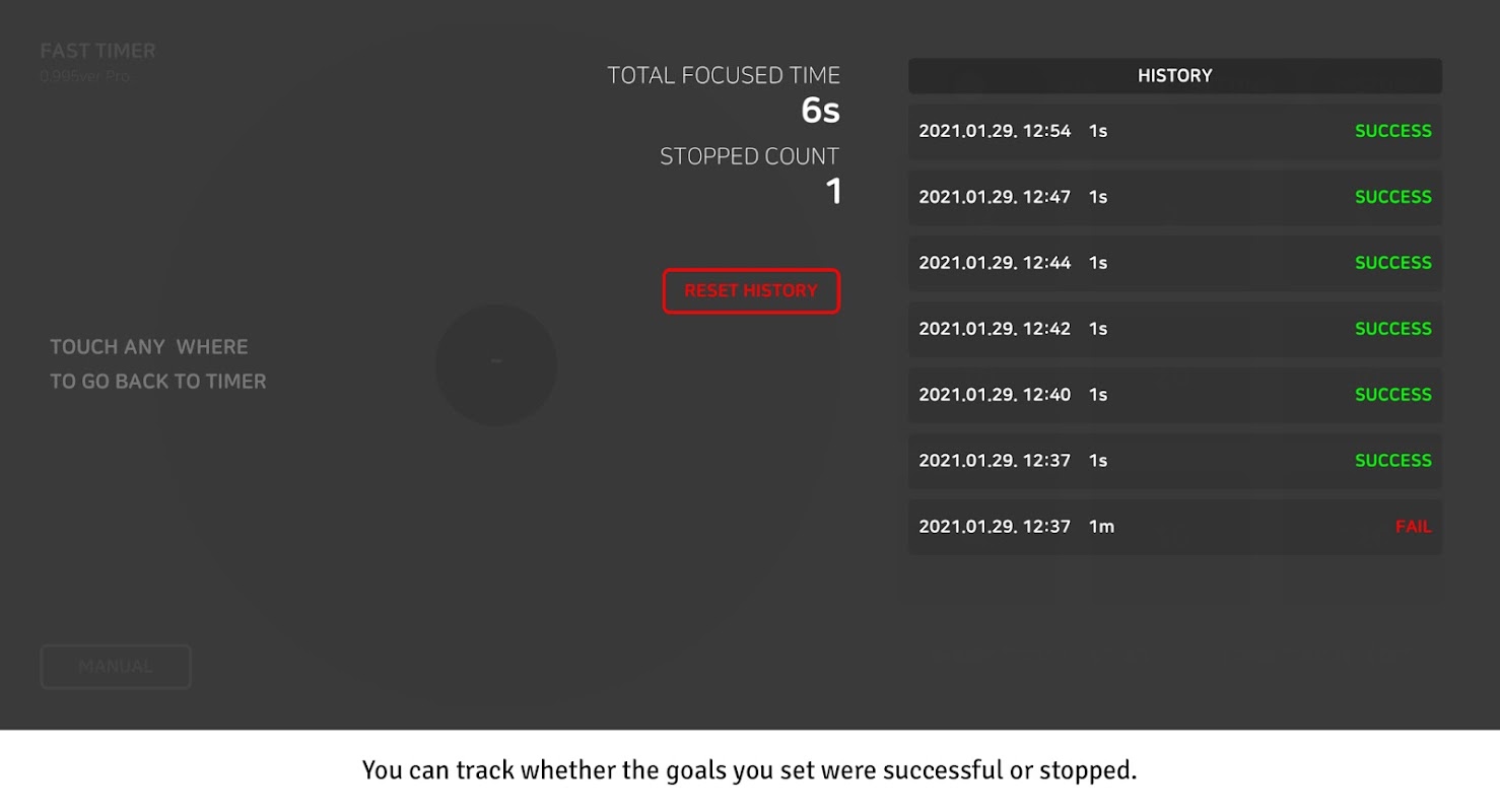 -شما می توانید در حین استفاده از تایمر مکث کنید و می توانید کل زمان را با ترکیب زمان هدف و زمان توقف فعال کنید.