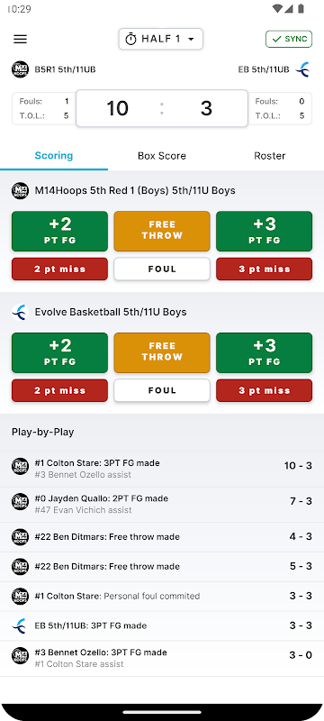 امتیازدهی در زمان واقعی: هر ضربه زده شده، شوت از دست رفته، پرتاب آزاد و پاس گل را در حین پیشرفت بازی ثبت کنید، مطمئن شوید که هیچ لحظه ای از دست نمی رود.