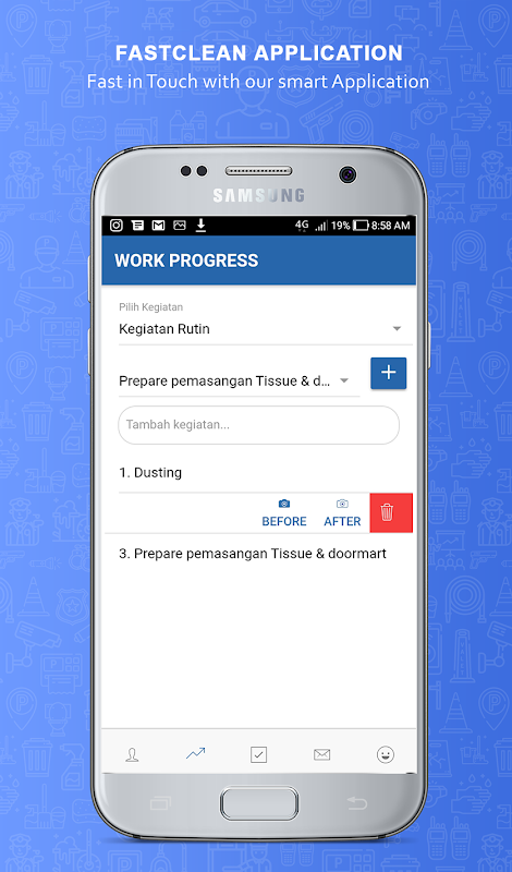 Setiap progress pekerjaan Team Leader / Supervisor harus diinput melalui fitur work progress, adapun lampiran foto sebelum dan sesudah progress