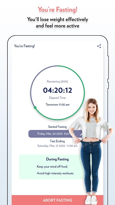 روزه داری: ساعات روزه داری را دنبال کنید ، روزه داری متناوب شما را به یک سبک زندگی جدید با عادت های سالم راهنمایی می کند. شما به طور م weightثر لاغر می شوید و احساس تحرک بیشتری می کنید.