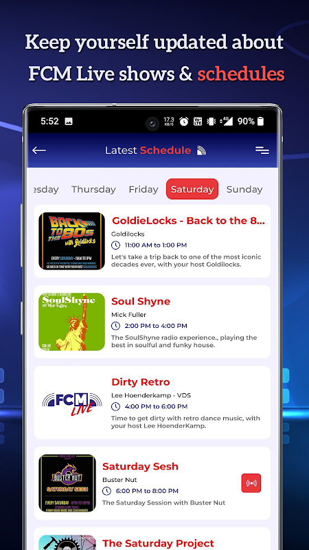برنامه FCM Go مجله کلاس اول را با پلتفرم رادیویی FCM Live ترکیب میکند و انتخابی بسیار محبوب برای دانشجویان، فارغالتحصیلان و متخصصان است.