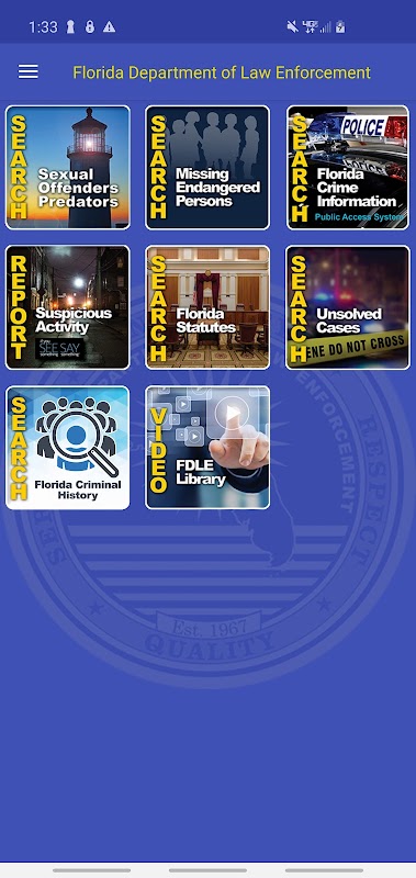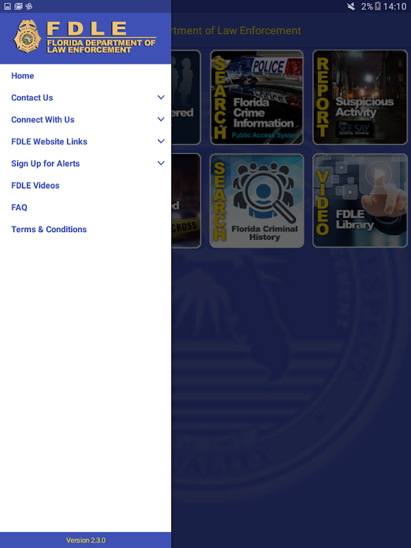 برنامه رسمی تلفن همراه وزارت اجرای قانون در فلوریدا (FDLE) دسترسی به خدمات ارائه شده به مردم را آسان تر کرده است. این برنامه یک بارگیری رایگان است و امکان پیمایش کاربر پسند را برای دستگاه های تلفن همراه فراهم می کند.