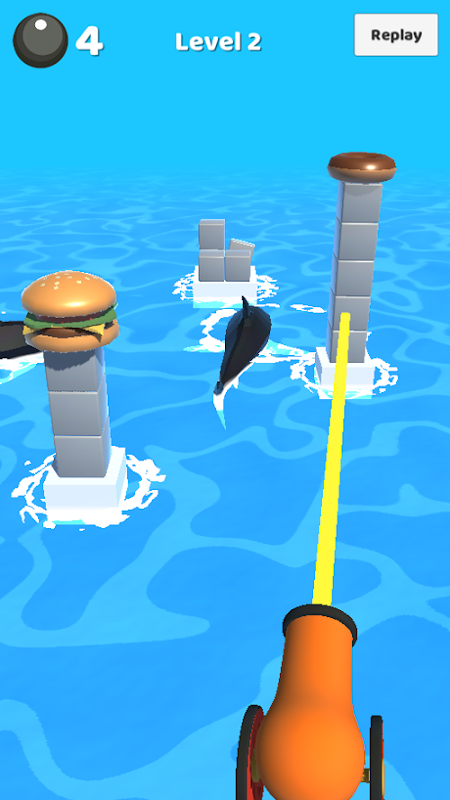 Use your cannon to shoot the blocks and knock the tasty food into the water for the hungry sharks, try to feed them all the food, they are so hungry! These pet sharks are friendly to you and love burgers!