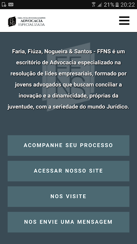 Faria, Fiúza, Nogueira & Santos - FFNS é um escritório de Advocacia especializado na resolução de lides empresariais, formado por jovens advogados que buscam conciliar a inovação e a dinamicidade, próprias da juventude, com a seriedade do mundo Jurídico.