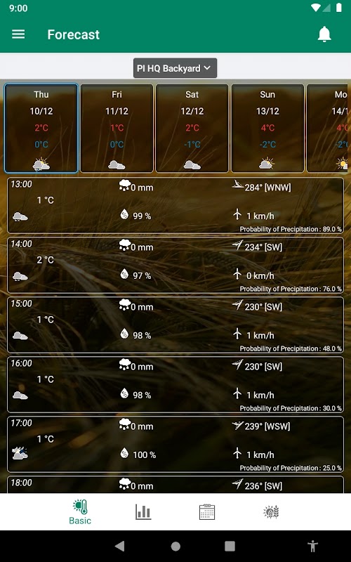 + پیش بینی آب و هوای ساعتی دقیقاً در زمین شما برای 7 روز آینده.
