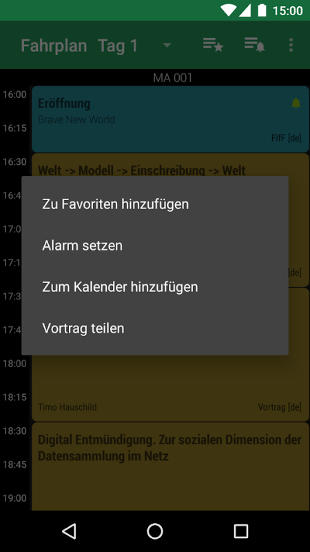 [1] برنامه برنامه زمانی - https://play.google.com/store/apps/details؟id=info.metadude.android.congress.schedule