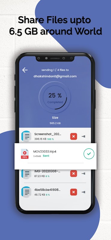 In this app, you can send files up to 6.5 GB anywhere worldwide. Simple and Easy way to Login in and Sign Up