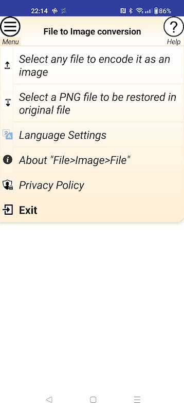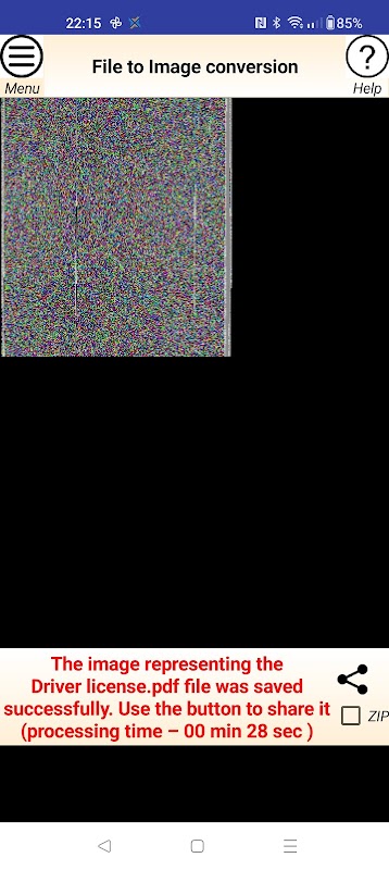 This application allows you to encrypt any FILE (pdf, doc, jpg, zip...) into an IMAGE. The application shows you the resulting image and gives you the option to save it as a PNG/ZIP and send this image to anyone via email, whatsapp,.... You or another person will be able to decrypt this image into an original file using this application. The name of the original file is also stored inside the image.