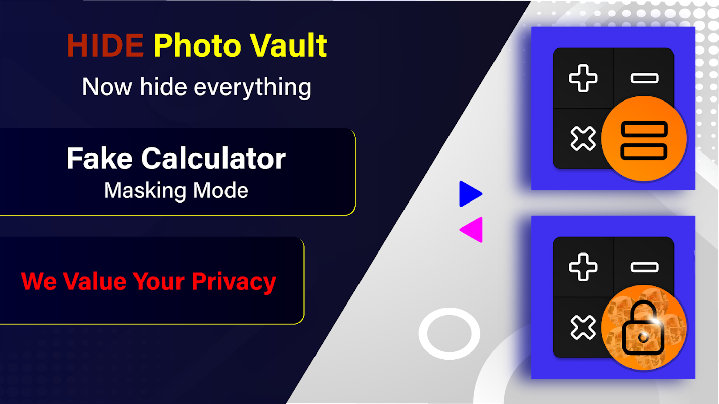 File Locker - Calculator Vault For Hide Photo Video & App Lock می تواند به شما کمک کند تا هر برنامه ای را مخفی کنید و با پنهان کردن داده ها حریم خصوصی خود را حفظ کنید. می توانید داده های پنهان را در ماشین حساب مخفی یا رابط تلفن خود باز کنید. از این ماشین حساب File Locker برای مخفی کردن تصاویر یا مخفی کردن عکس ها، مخفی کردن فیلم ها و استفاده از قفل برنامه مخفیانه در داخل یک برنامه استفاده کنید. خزانه عکس ماشین حساب عملکرد تصویر مخفی را فراهم می کند که تصاویر شما را به گالری وارد می کند که دیگران نمی توانند این عکس ها را ببینند. می توانید تصاویر محافظت شده را در گالری hideU مرور کنید. واقعاً یک قفل مخفی برای فایل های شخصی خود در تلفن خود می خواهید. بنابراین، عکس ماشین حساب برنامه ای عالی برای دور نگه داشتن عکس ها و فیلم های شما از افراد دیگر است.