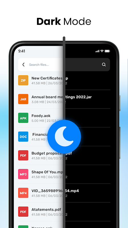 ● ALL File Formats Supported: Downloads, New files, Videos, Audios, Images, Archives, Apps, and Docs