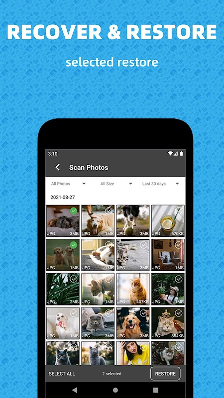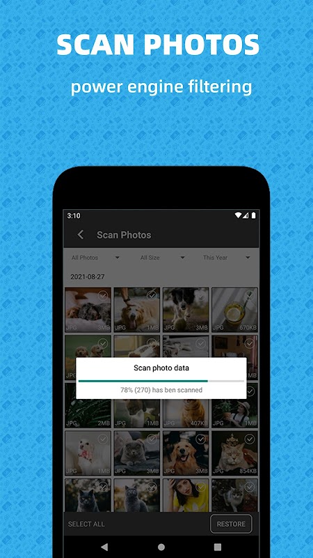 فایل های رسانه ای حذف شده (عکس ، ویدئو ، صدا) را از حافظه دستگاه خود بازیابی کرده و عکس ها را مستقیماً به تلفن خود بازگردانید. این شامل همه موارد آن است. برنامه بازیابی فایل برای بازیابی تصاویر ، فیلم های حذف شده ، فایلهای صوتی و موتورهای اسکن قوی و پیشرفته موظف است تمام فایل های شما از جمله تصاویر کوچک و فایلهای ذخیره شده را مرور کرده و فایل های از دست رفته را بازیابی کند.