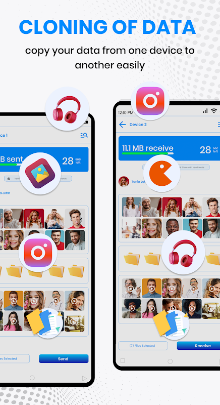 نگران از دست دادن اطلاعات پس از خرید گوشی جدید نباشید. با ابزار اشتراک گذاری و انتقال super apk، می توانید به راحتی فایل ها و داده های تلفن همراه مانند مخاطبین، پیامک ها، عکس ها، آهنگ ها، فیلم ها، برنامه ها و هر فایل دیگری را از تلفن قدیمی خود به گوشی جدید انتقال دهید.
