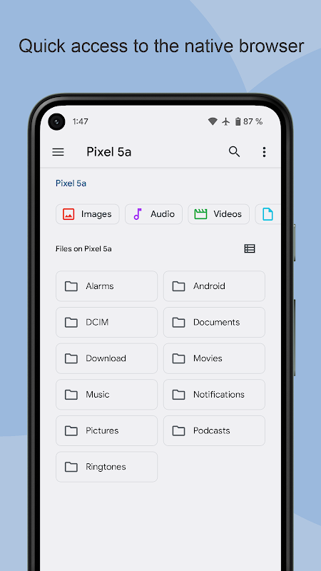 اکثر دستگاه ها دارای یک مرورگر فایل بومی هستند که معمولاً پنهان است، برنامه ما میانبر آن مرورگر است.