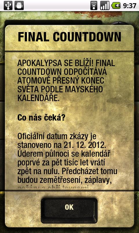S aplikací FINAL COUNTDOWN můžeš sledovat každou pohromu, která se na tebe valí! Přejeme příjemné zážitky.