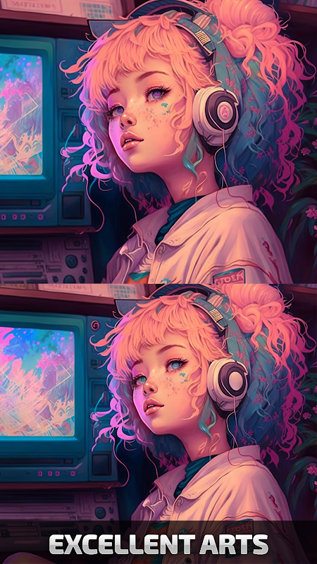 The game "Find 4 Differences" is similar to games like "find the differences" and "picture puzzles," but it features beautiful stylized drawings and frames from cartoons, as well as soothing music that adds to the enjoyment of the game.
