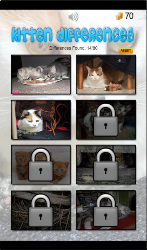 Click to start the game.You have to compare the two images of kittens and cats that have 10 hidden differences among the two scenes.You can skip ahead to each level after you find at least 7 hidden differences.
