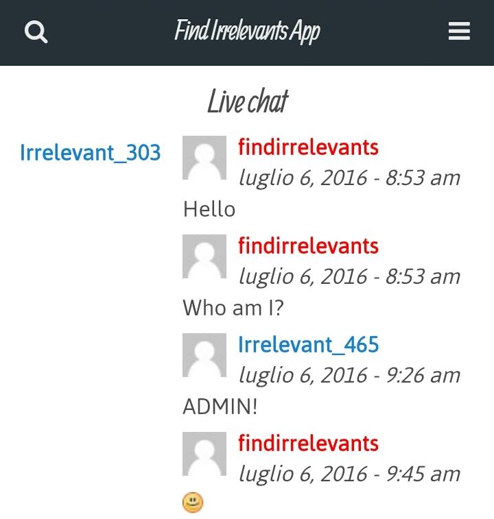 - In the CHAT section you can chat with other online Irrelevants. You can click on CUSTOMIZE to change your nickname and the text colour. You can also insert emoticons. Click on your phone sending button to send your message. You can insert link, link to youtube (with automatic video converting) and twitter hashtags. Please remember to delete the app cache once a week to have more powerful experience with the chat.