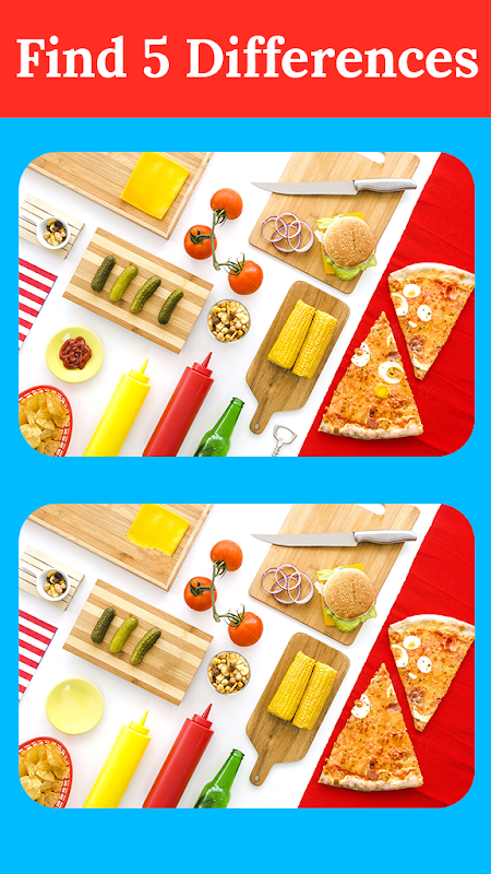Find Differences - Delicious Food images is a kind of find difference games with many food, yummy fruit images. You need to spot differences between the two images of food, tasty fruits and vegetable to win in the guess the difference games. The guess difference, picture quiz game has limited time so you need to focus, attention to detail. Also, concentration test, attention training with the food quizzes games.