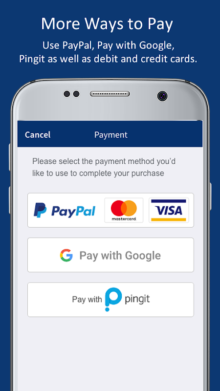 • Payments via Visa, Mastercard, PayPal, Pay with Google and Pingit
