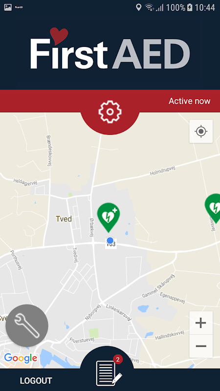 FirstAED اطلاعات در مورد اورژانس تماس استراحتی از کنترل پنل و هشدار به یاران حاد همراه نزدیک nødstedet دریافت خواهید کرد.