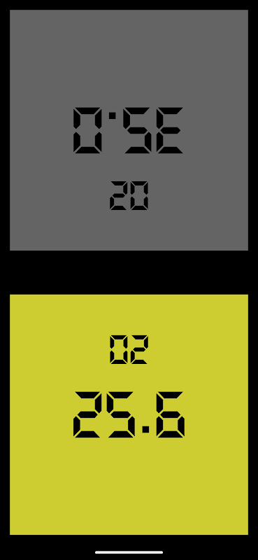 با لمس دکمه مکث زمان اجرا متوقف می شود و دکمه های تنظیمات (چرخ چرخ دنده سمت چپ) و تنظیم مجدد (پیکان چرخش) را نشان می دهد.