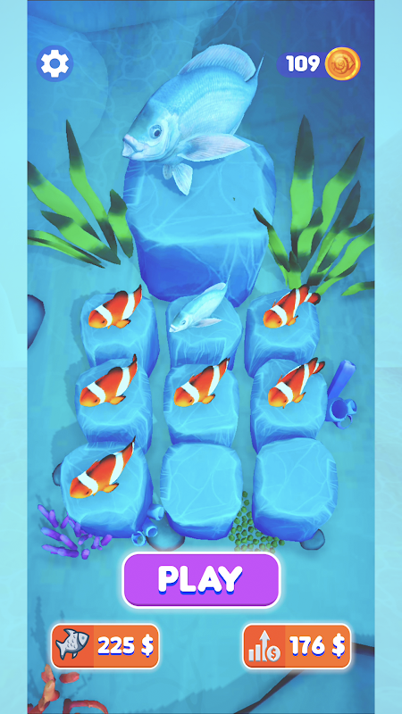 در ابتدا، شما یک دلقک ماهی هستید که در حال کاوش در دنیای زیر آب هستید. شما می توانید با ادغام با ماهی های مشابه یا سطح پایین تر خود را تکامل دهید و به سمت خط پایان بشتابید. هر چه سطح شما بالاتر باشد، سکه های بیشتری به دست خواهید آورد. بیایید و ماهی های کوچک مختلف را باز کنید.
