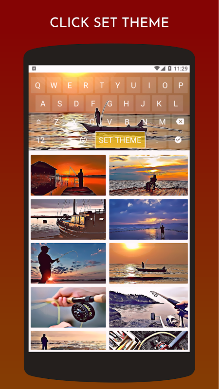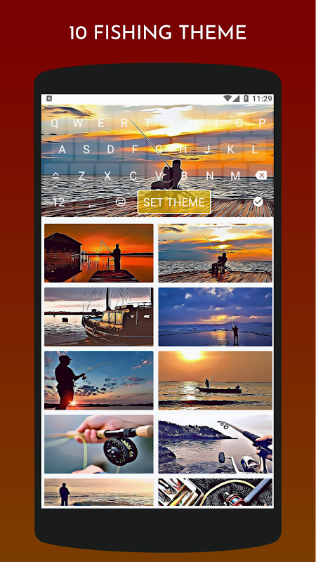 In this fishing keyboard theme application there are 10 different image themes about fishing. To apply the keyboard theme on your smartphone you can click one of the images. Then there will appear a keyboard display that will appear, after which you can click the theme set. Then Fishing Keyboard Theme you can enjoy the look on your smartphone. It's easy to use it.