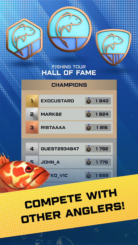 به ماهیگیران از سراسر جهان بپیوندید و با آنها در مناظر باورنکردنی از دریای کارائیب، بسیاری از دریاچه ها و رودخانه های سوئد تا سواحل آفتابی فلوریدا رقابت کنید، دنیای تور ماهیگیری متعلق به شماست. با انتخاب گسترده ای از وسایل و تجهیزات ماهیگیری که در اختیار دارید، میله ماهیگیری، طعمه و وسایل ماهیگیری خود را متناسب با سبک منحصر به فرد خود در ماهیگیری سفارشی کنید. وسایل خود را ارتقا دهید تا شانس خود را برای گرفتن ماهی های بزرگ گریزان افزایش دهید و در رتبه های بالاتر بروید تا به برترین ماهیگیر در انجمن تور ماهیگیری تبدیل شوید.