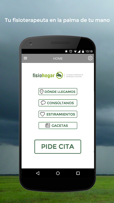 Fisio en tu móvil es una aplicación que te permite llevar tu fisioterapeuta personal en el bolsillo. Nuestro equipo de fisioterapeutas a domicilio responderá tus dudas acerca de los tratamientos de fisioterapia. Podrás solicitar cita con tu fisioterapeuta habitual y además tendrás a tu disposición las tablas de estiramiento y las gacetas de fisiohogar para poder realizar tus estiramientos allí donde estés.