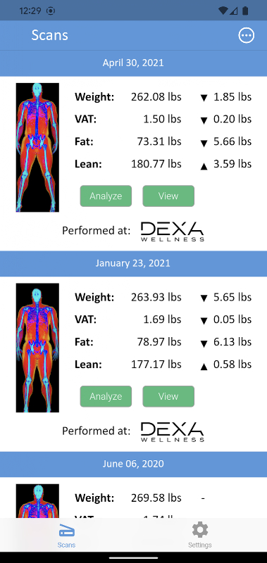 توجه داشته باشید که شرکای FitTrace DXA (به https://www.fittrace.com/partners/ مراجعه کنید) اسکن های شما را به صورت الکترونیکی در دسترس شما قرار می دهند. در غیر این صورت، اگر در یکی از این امکانات اسکن نشده اید، می توانید داده های DXA خود را به عنوان خرید درون برنامه ای به صورت دستی وارد کنید.