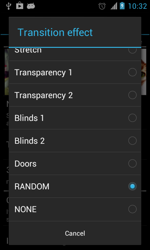 ● یا برای تغییر تصویر زمینه تلفن خود را تکان دهید <- در واقع ممکن است بر عمر باتری تأثیر بگذارد، از شتاب سنج استفاده می کند