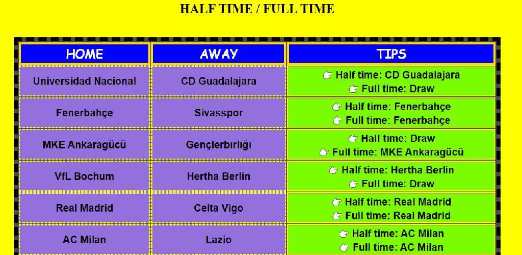 Half time full time tips added