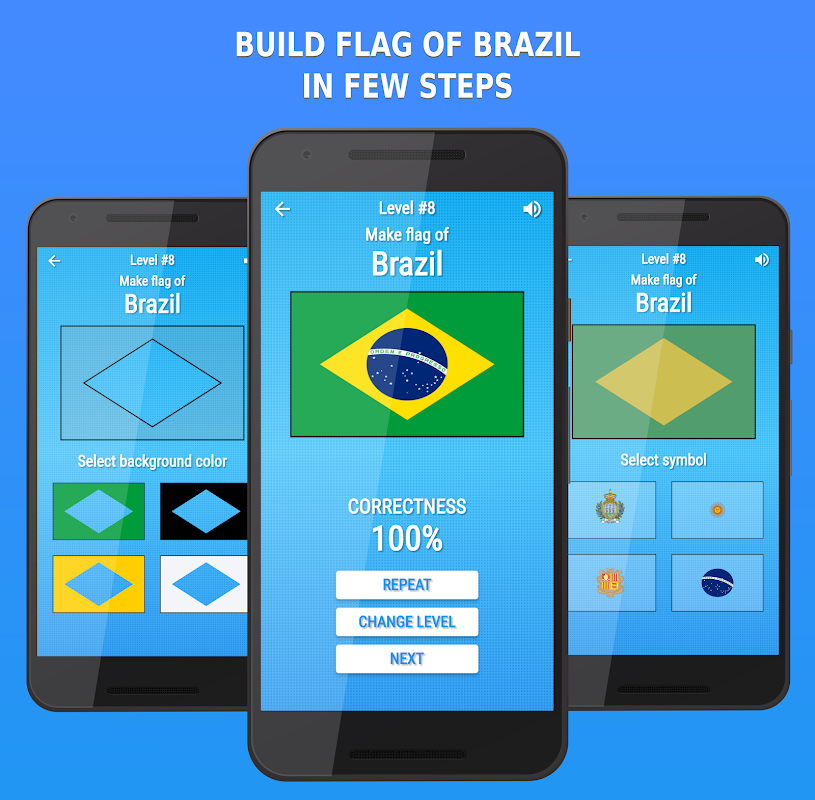با کنترل های بصری و آسان برای استفاده، بازی برای بازیکنان در تمام سنین و سطوح مهارت عالی است. گیم پلی بازی ساده و در عین حال چالش برانگیز است، زیرا باید اشکال و رنگ های مختلف را ترکیب کنید تا پرچم یک کشور خاص را بازسازی کنید.